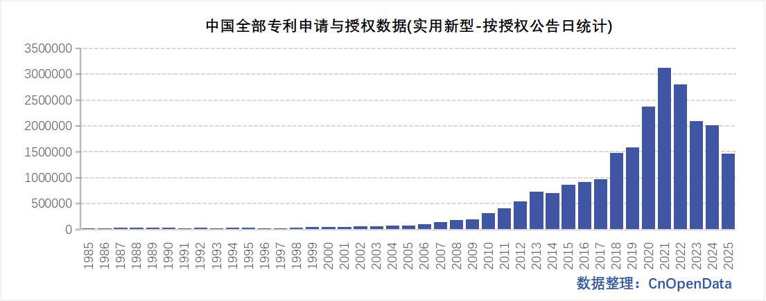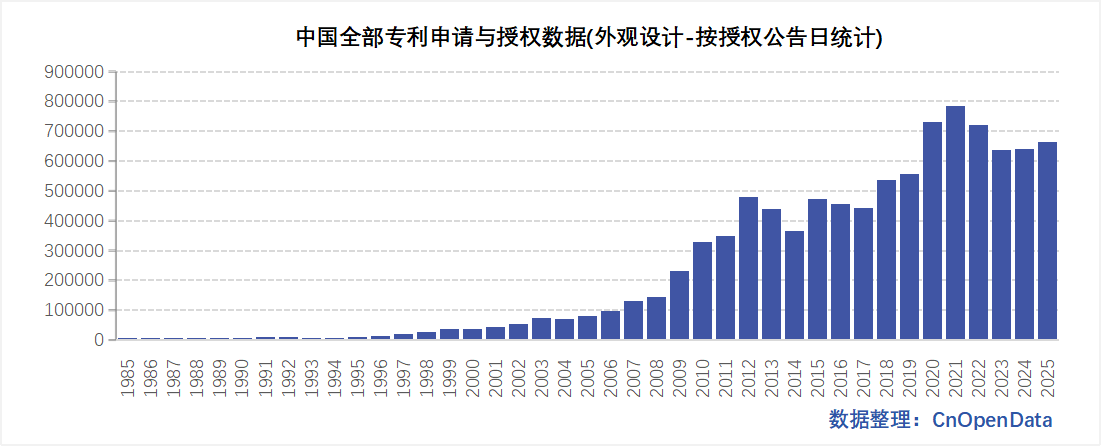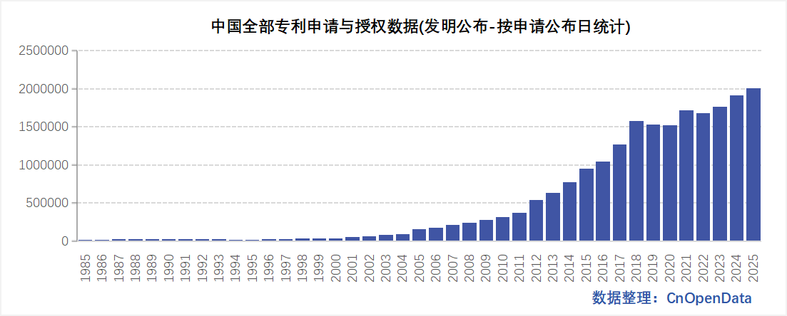 - 发明授权/实用新型/外观设计按照授权公告日统计:1985-2025年